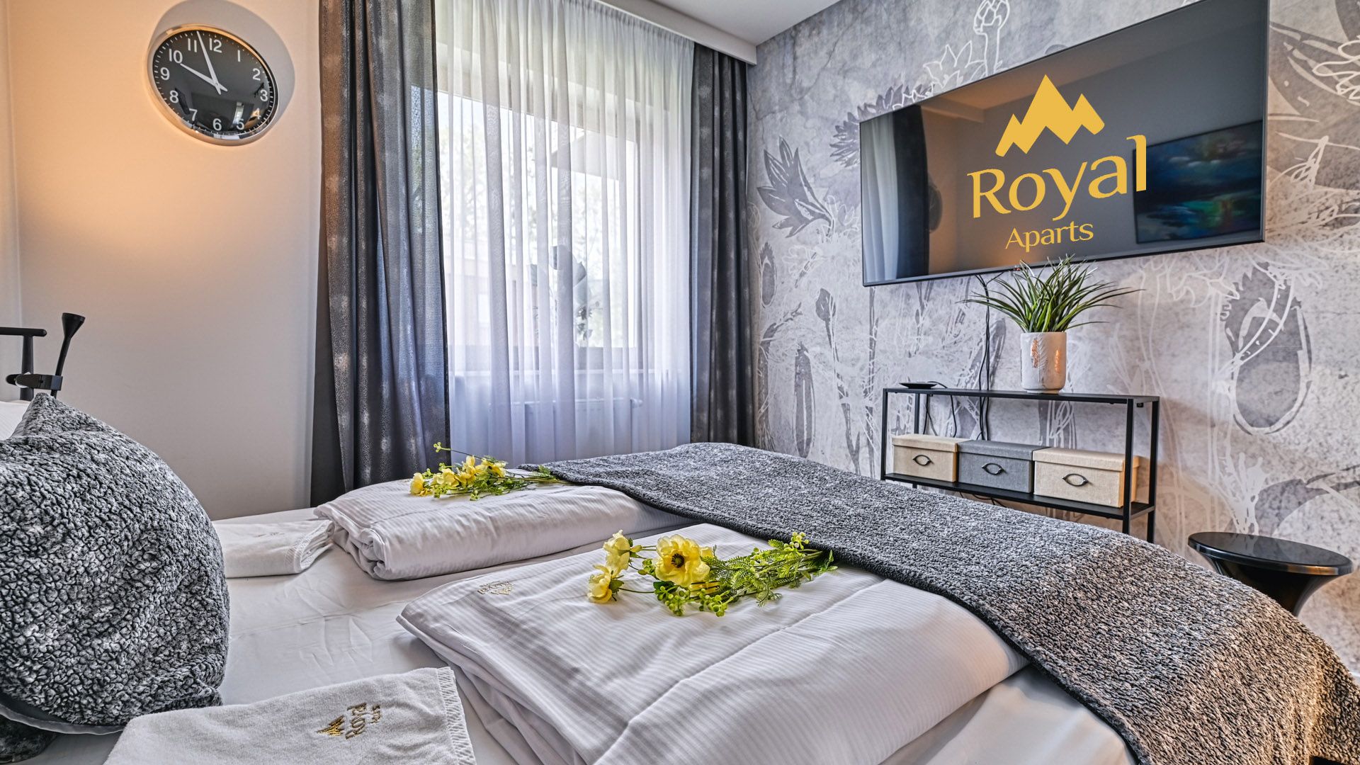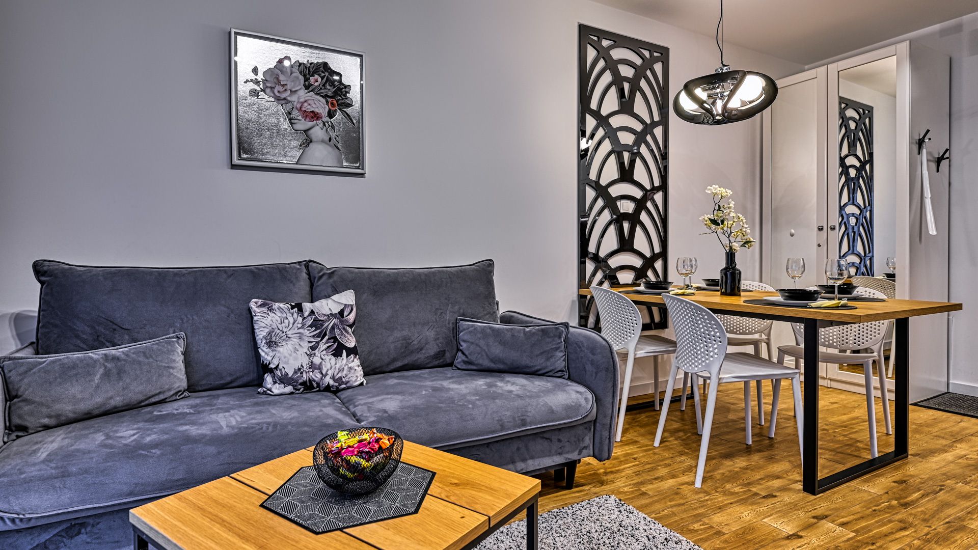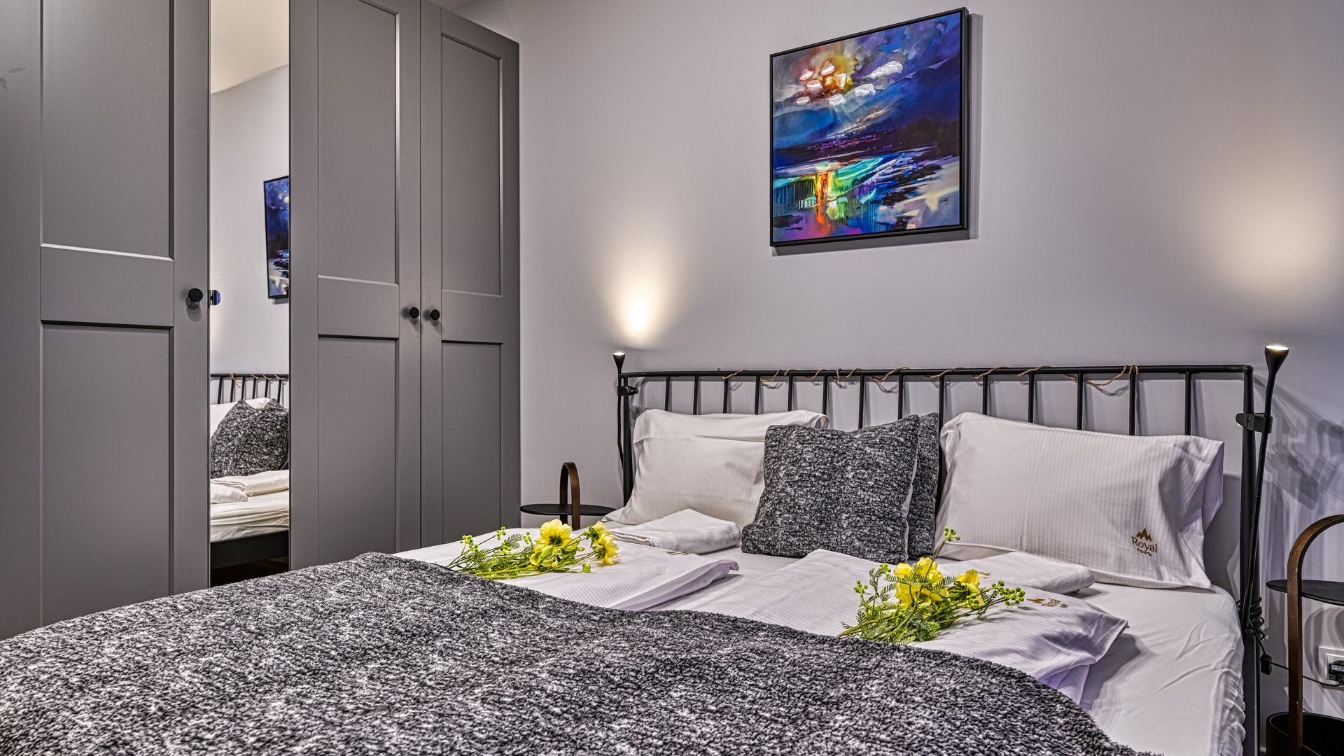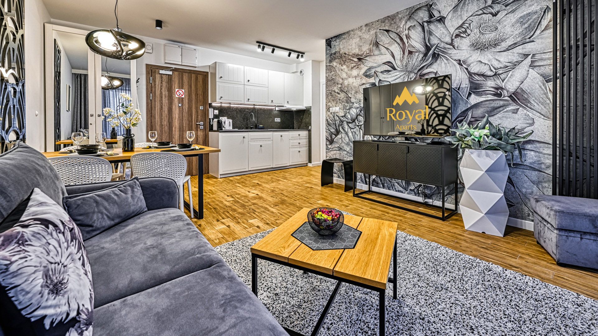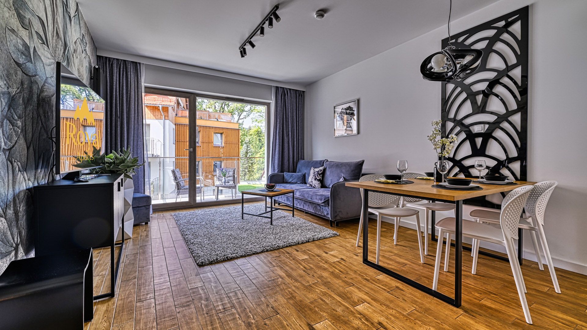 Prezentowany apartament jest częścią prestiżowego kompleksu Stone Hill w samym centrum Szklarskiej Poręby. To nowoczesny, czteroosobowy, w pełni wyposażony lokal o powierzchni 35m^2. W sypialni znajduje się duże łóżko małżeńskie, obszerna szafa oraz telewizor. Część dzienna apartamentu składa się z, salonu połączonego z aneksem kuchennym i wyposażona jest w rozkładaną sofę, panoramiczny telewizor oraz stół kuchenny. Całość domyka wykończona w wysokim standardzie łazienka.