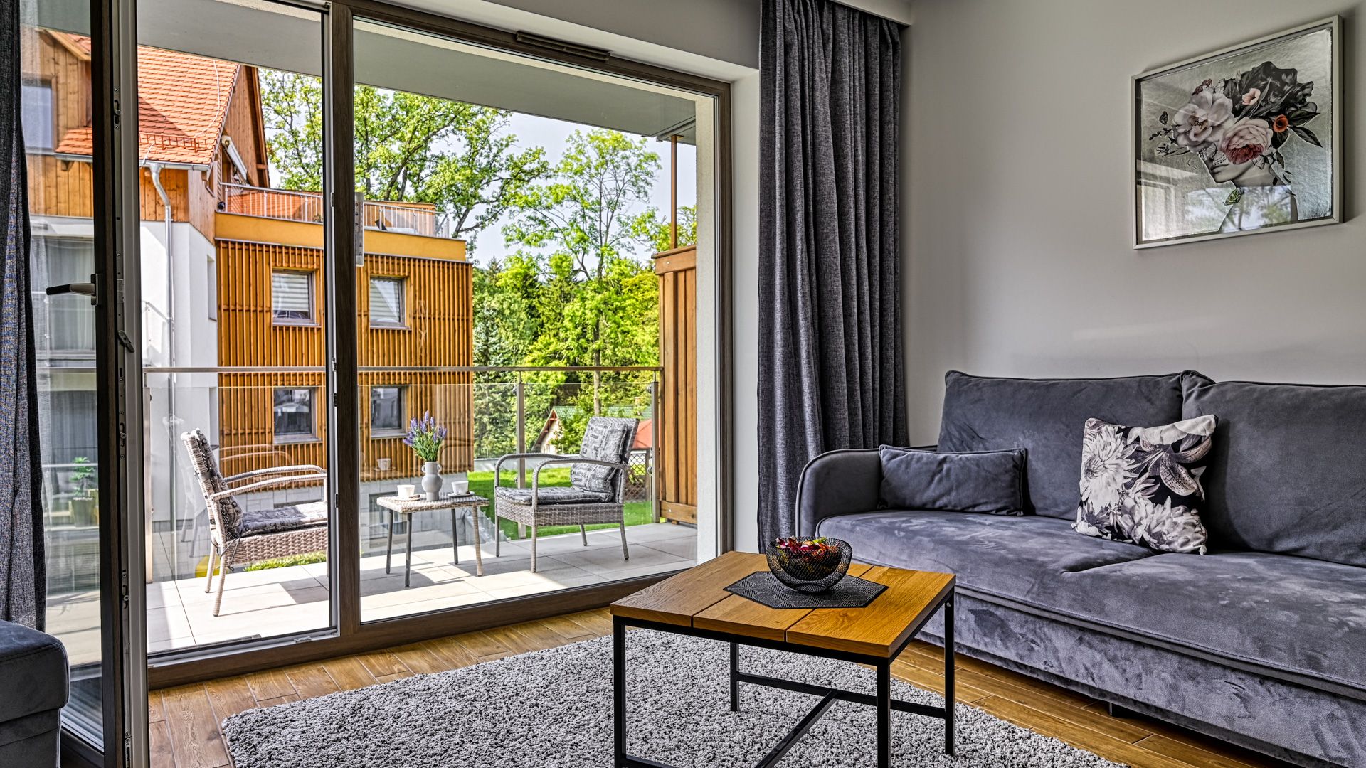 Obszerny balkon będzie ulubionym miejscem Gości na poranną kawę.