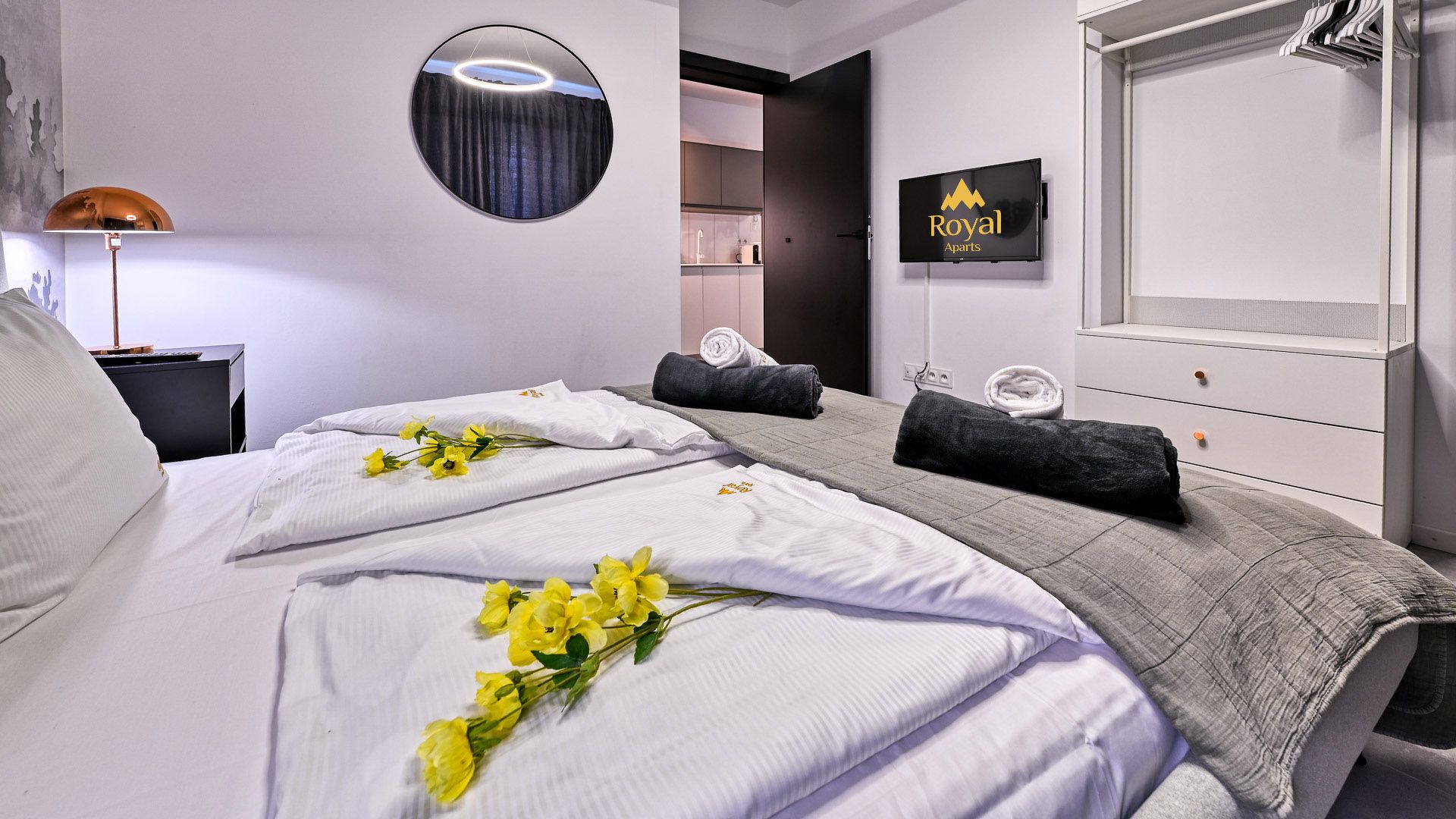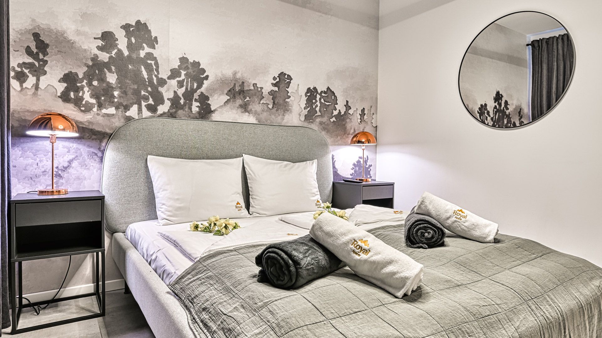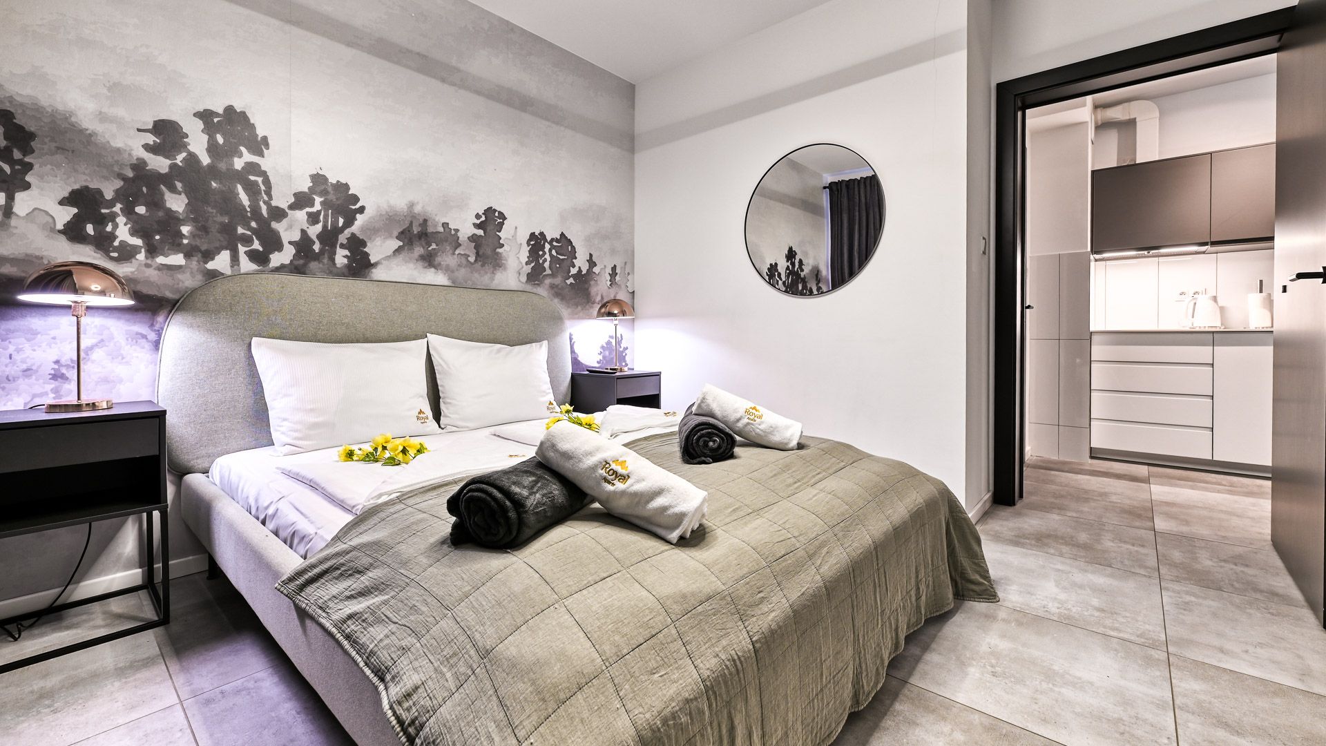 Apartament składa się z przestronnego salonu z rozkładaną, dwuosobową sofą i aneksu kuchennego, gdzie znajdziesz wszystkie niezbędne urządzenia i sprzęty do gotowania. W oddzielnej sypialni znajduje się telewizor oraz wygodne łóżko małżeńskie, zapewniające spokojny sen po dniu pełnym aktywności. W łazience znajduje się prysznic, umywalka i toaleta, zapewniające pełne wygody.