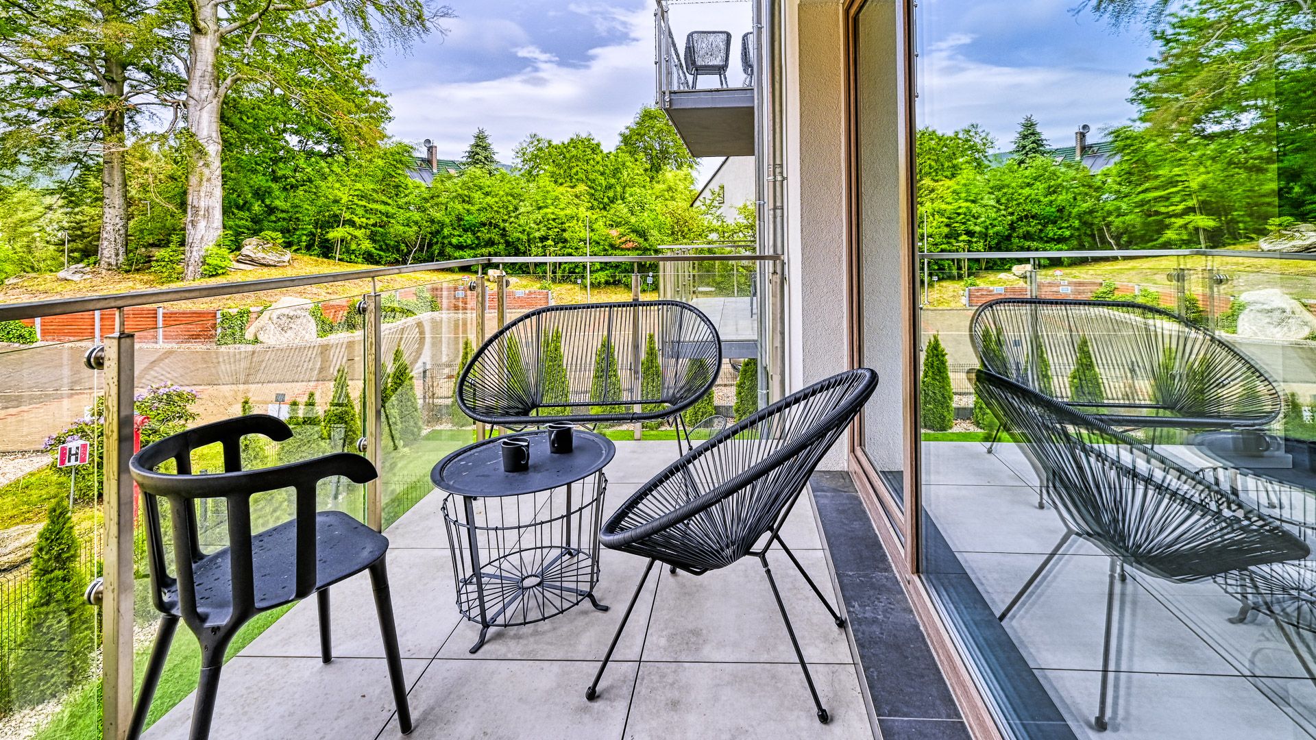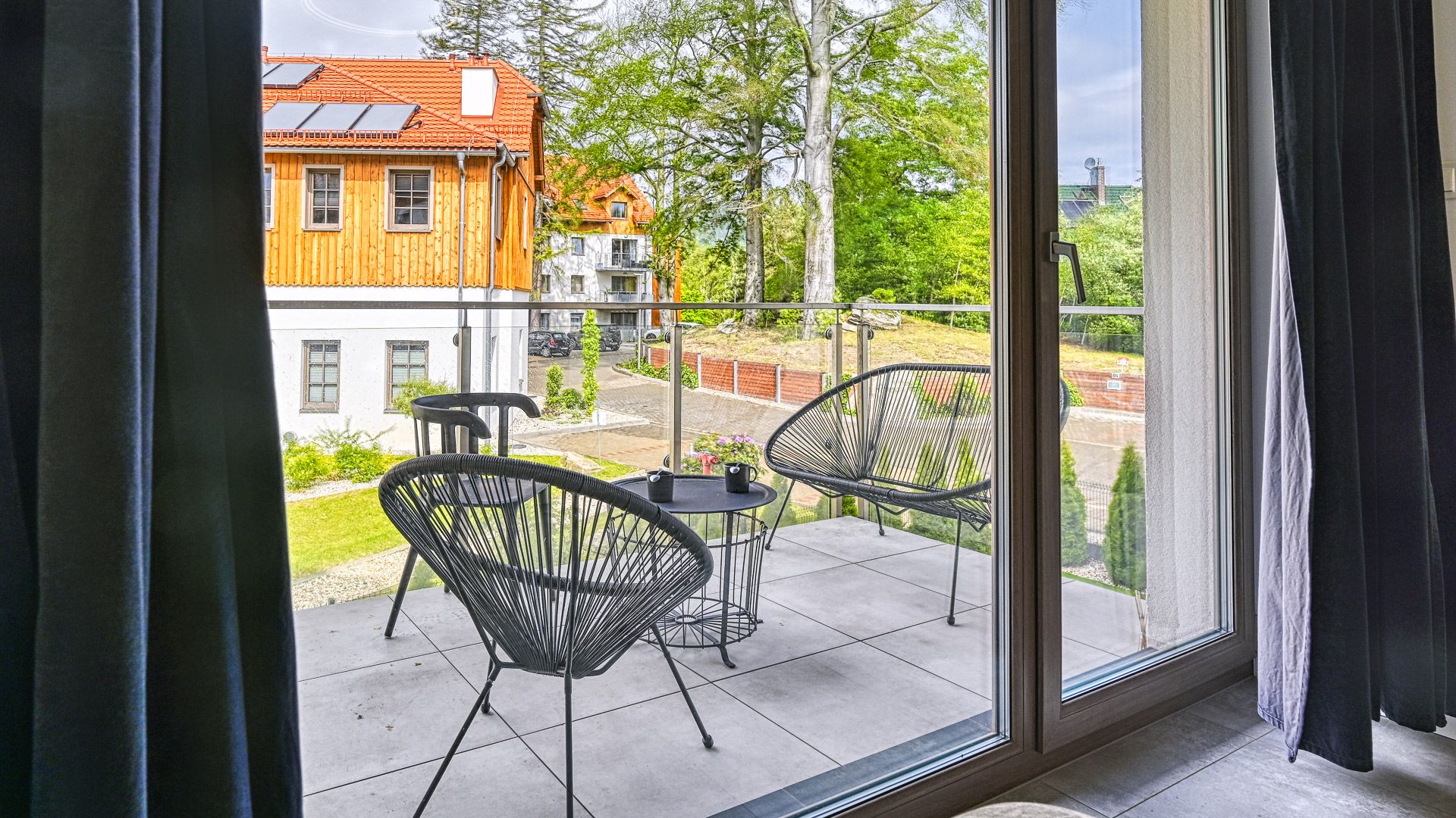 Apartament posiada balkon, który oferuje efektowne widoki. To idealne miejsce, aby zrelaksować się po pełnym wrażeń dniu i cieszyć się świeżym powietrzem.