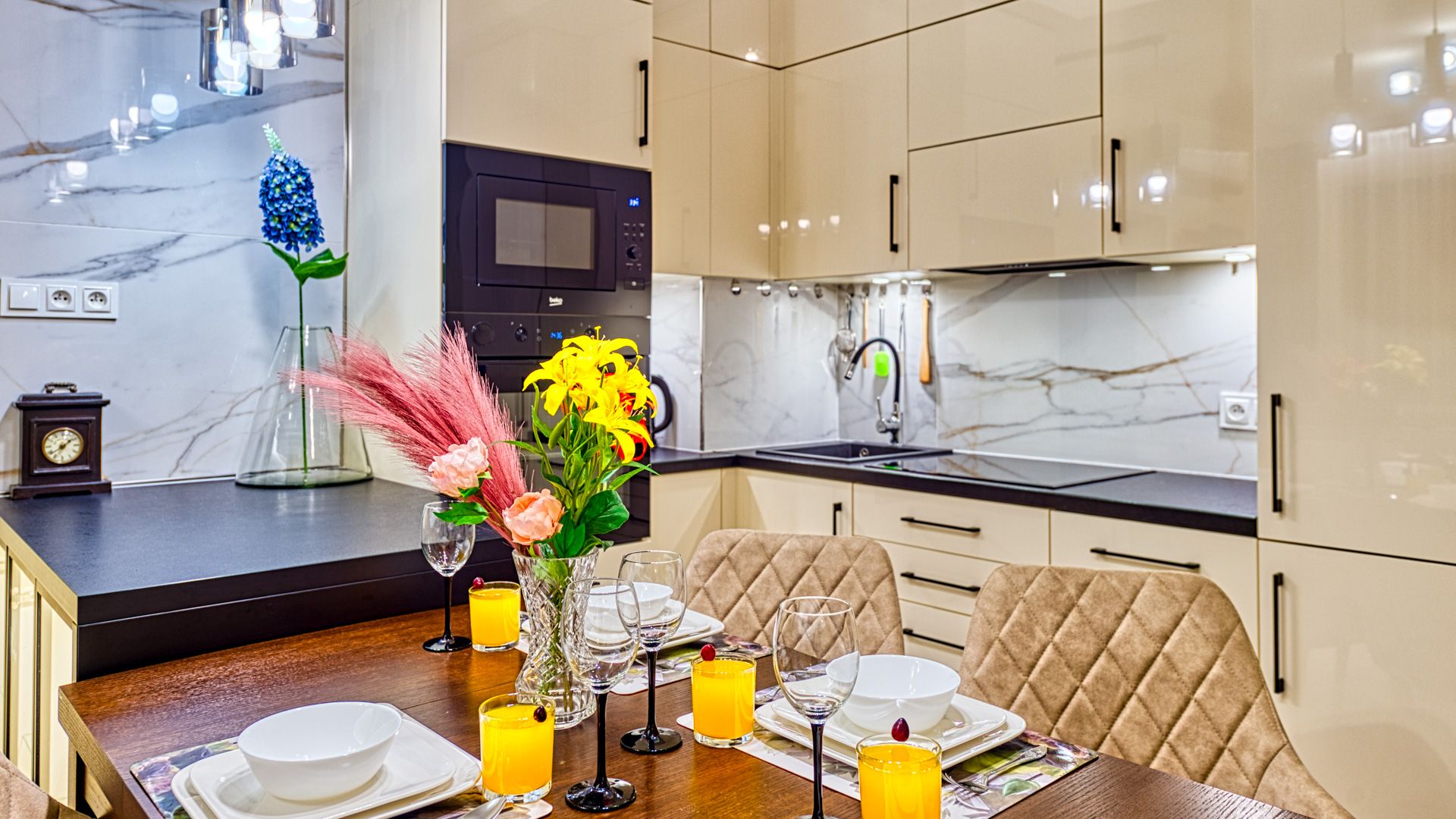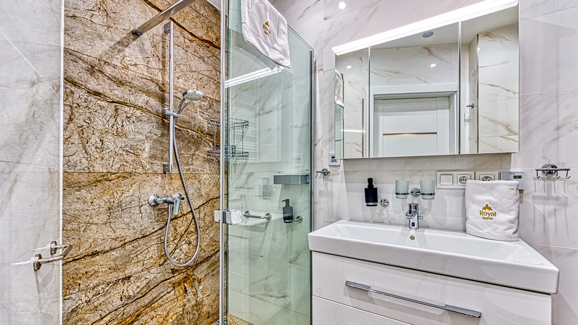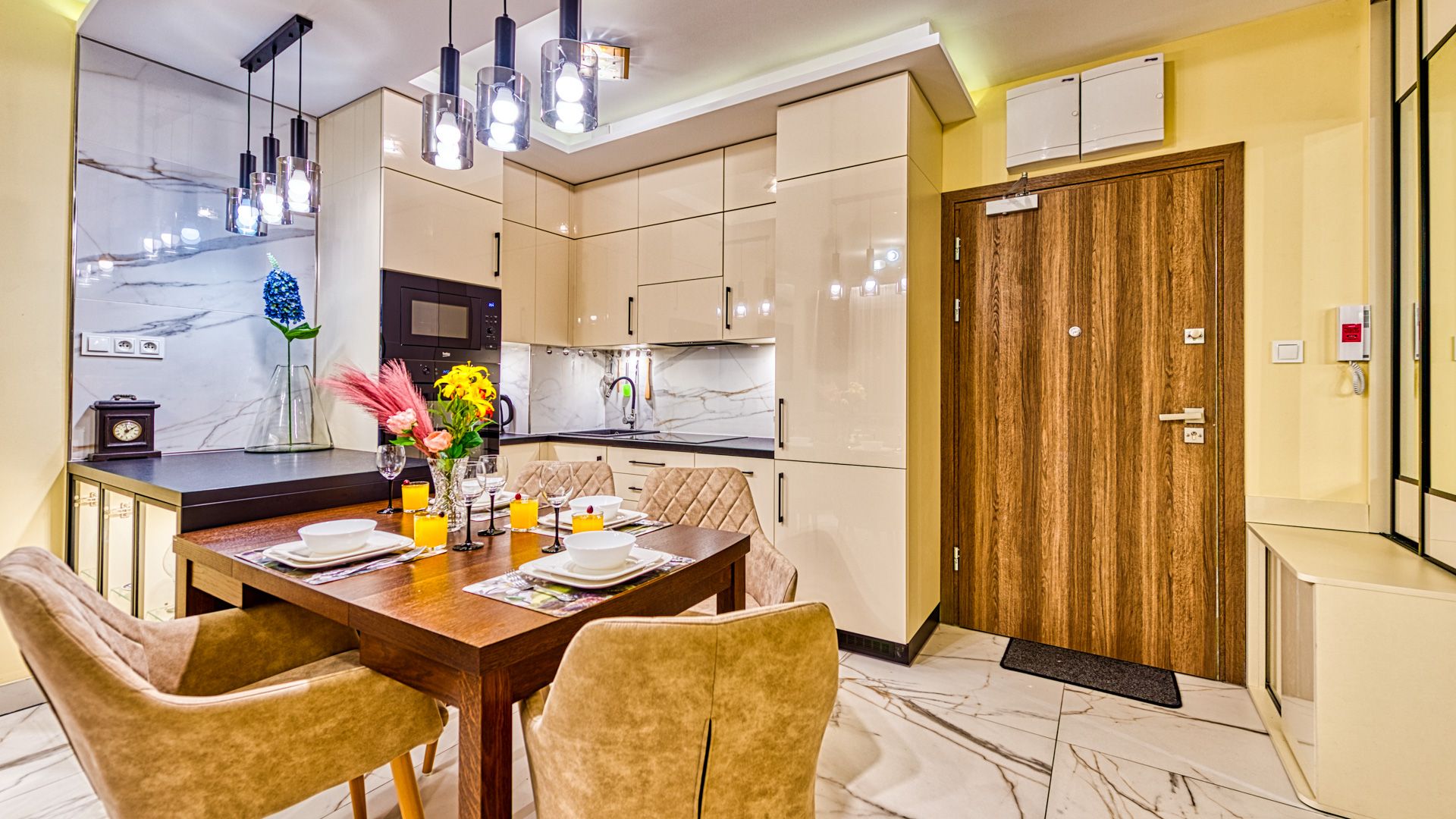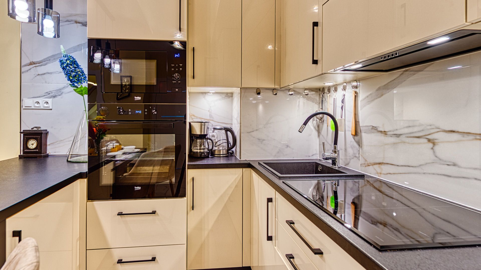 Sypialnia jest gustownie urządzona i wyposażona w wygodne łóżko dla dwóch osó. Salon z aneksem kuchennym to idealne miejsce do wspólnych posiłków i spotkań. Aneks kuchenny jest nowoczesny i w pełni wyposażony, oferując lodówkę, zmywarkę, płytę grzewczą, czajnik, ekspres do kawy oraz zestaw naczyń i sztućców. Nowoczesna łazienka wyposażona w prysznic. Zapewniamy świeże ręczniki oraz podstawowe przybory toaletowe. Balkon apartamentu to idealne miejsce do relaksu i odpoczynku na świeżym powietrzu. Jest przestronny i dobrze urządzony, oferując wygodne meble ogrodowe, na których można zrelaksować się przy kawie lub książce.