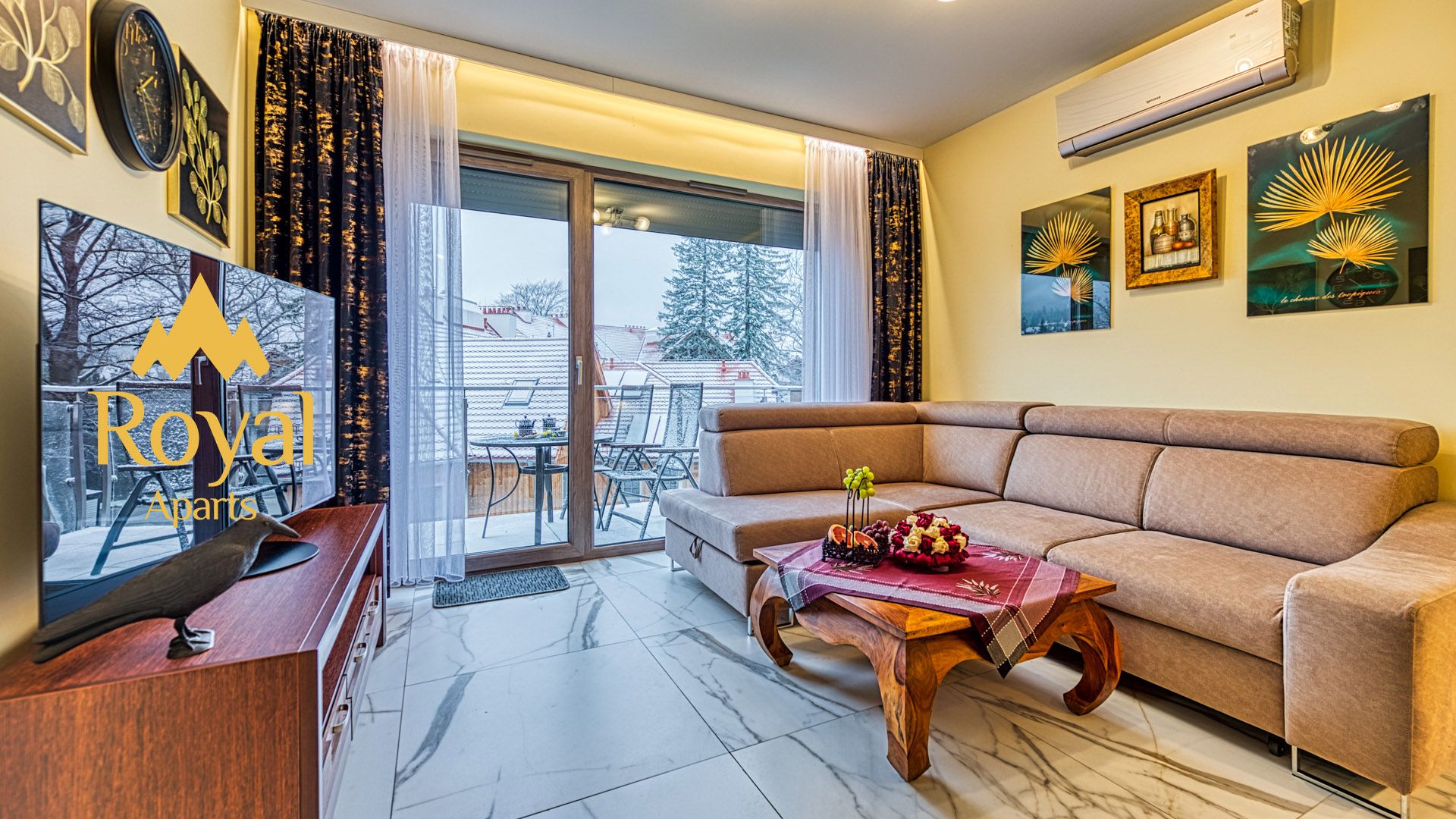 Prezentowany apartament jest częścią prestiżowego kompleksu Stone Hill, położonego w samym centrum urokliwej Szklarskiej Poręby. Ten nowoczesny apartament idealnie nadaje się dla czterech osób, oferując wygodną sypialnię oraz przytulny salon z aneksem kuchennym i klimatyzacją.