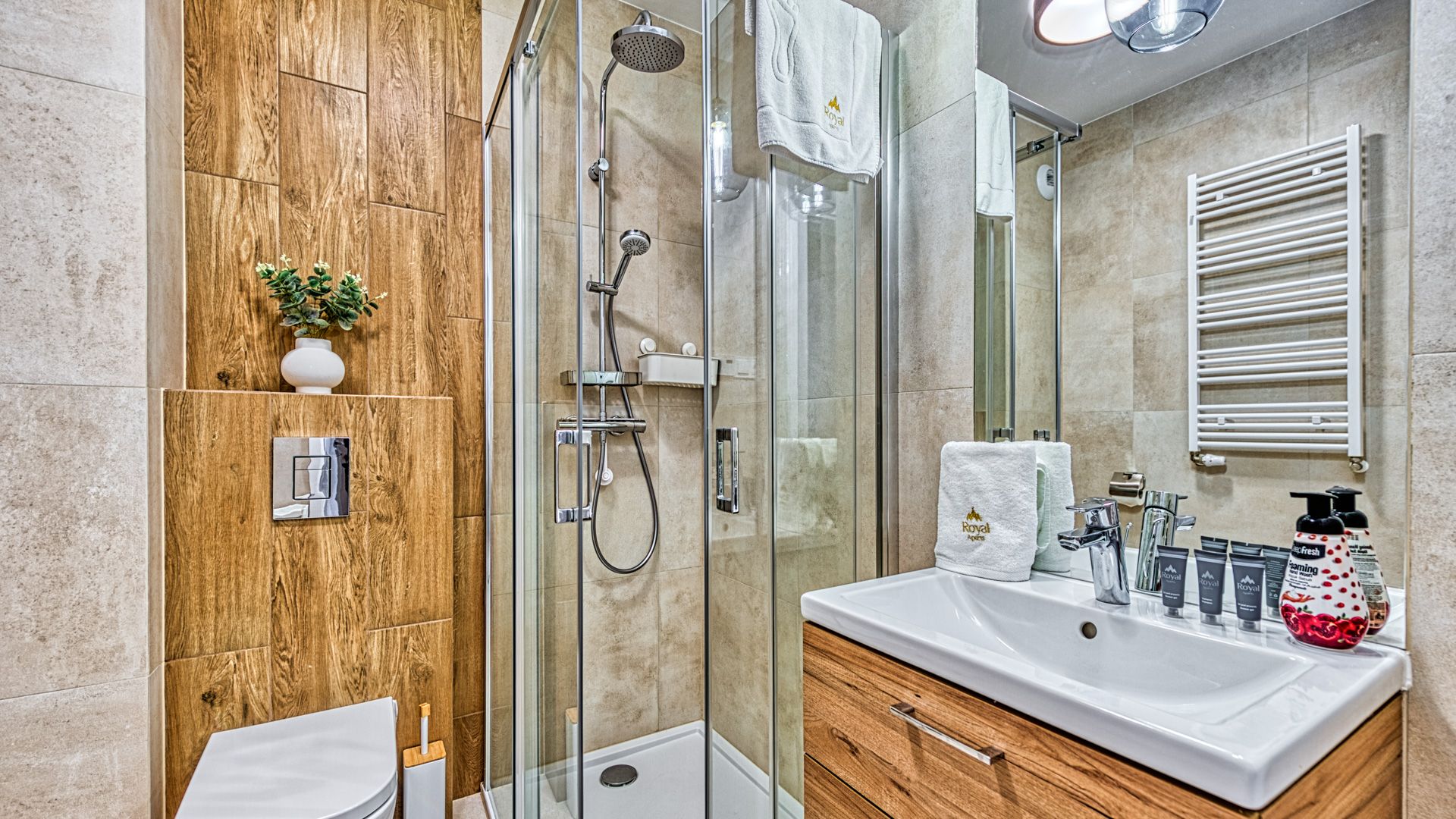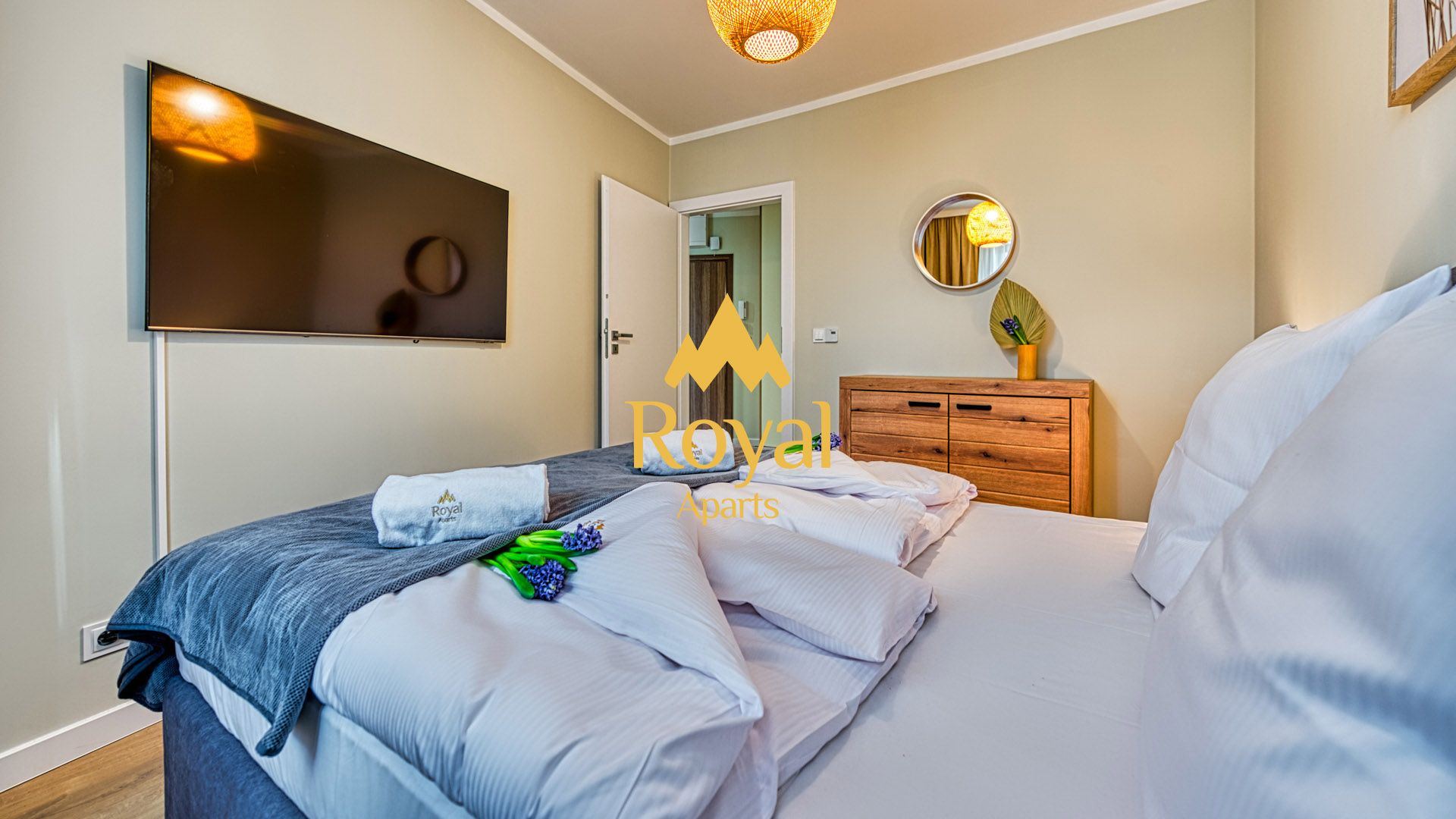 Prezentowany apartament jest częścią prestiżowego kompleksu Stone Hill w samym centrum Szklarskiej Poręby. To nowoczesny, czteroosobowy, w pełni wyposażony lokal o powierzchni 42m^2. W sypialni znajduje się duże łóżko małżeńskie, obszerna szafa oraz telewizor. Część dzienna apartamentu składa się z, salonu połączonego z aneksem kuchennym i wyposażona jest w rozkładaną sofę, panoramiczny telewizor i stół kuchenny. Całość domyka wykończona w wysokim standardzie łazienka.