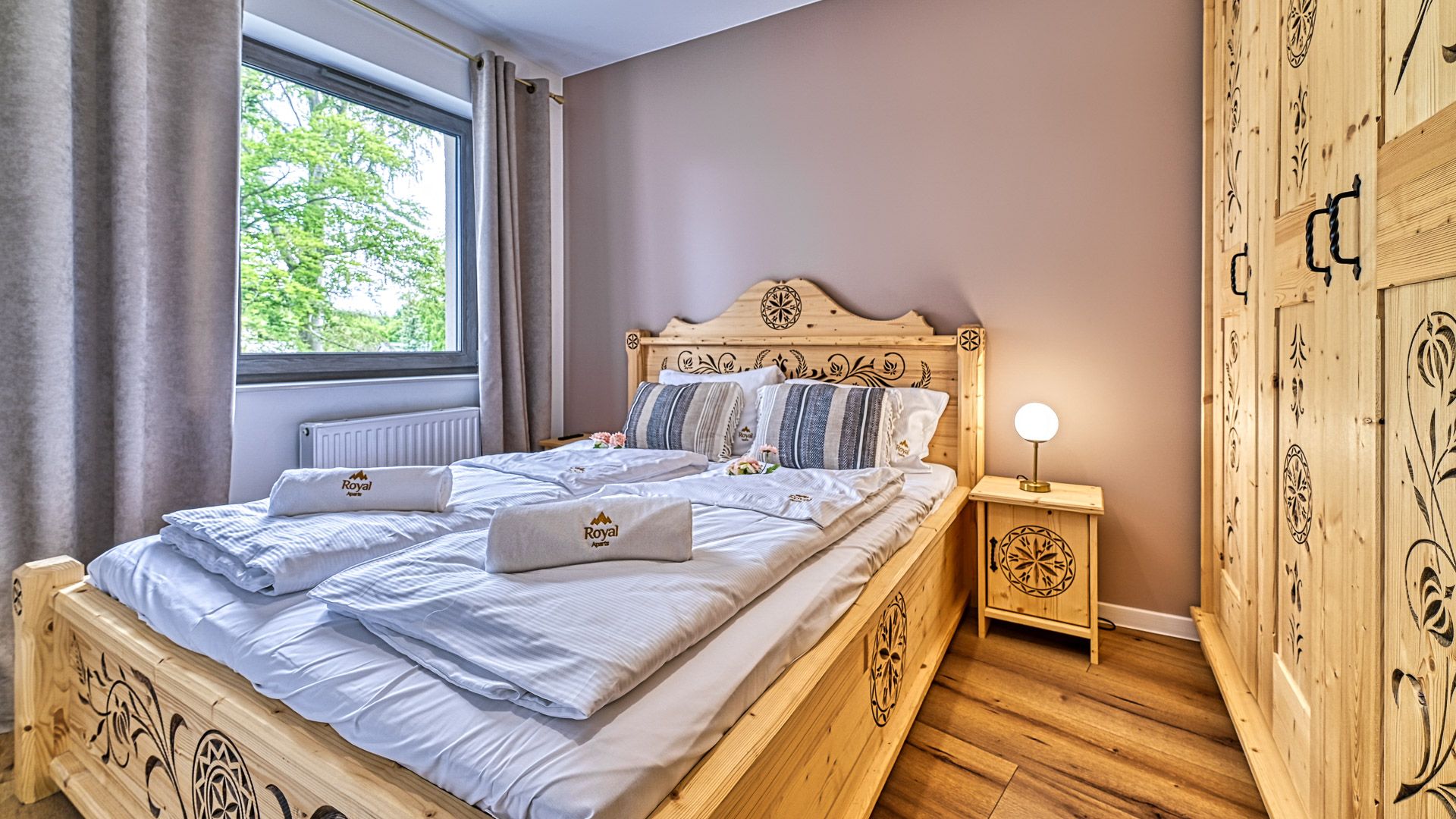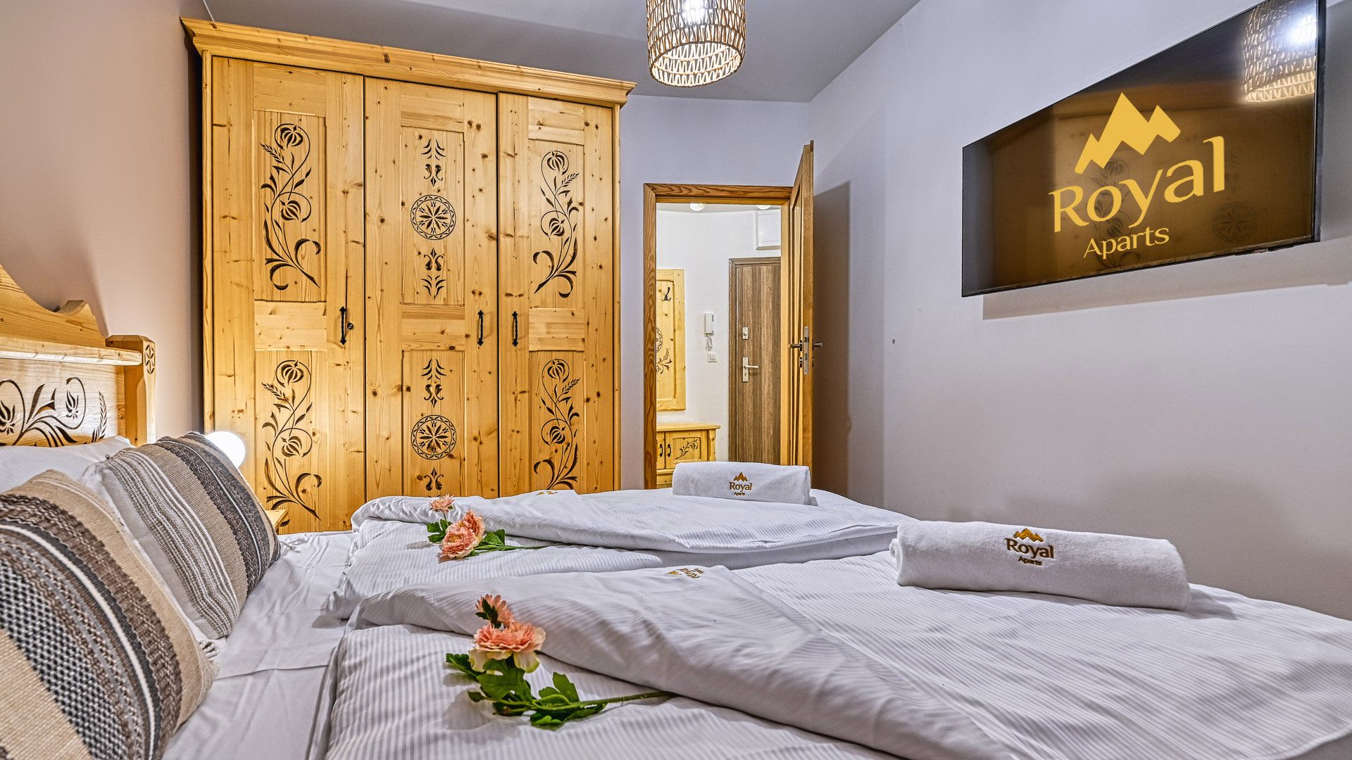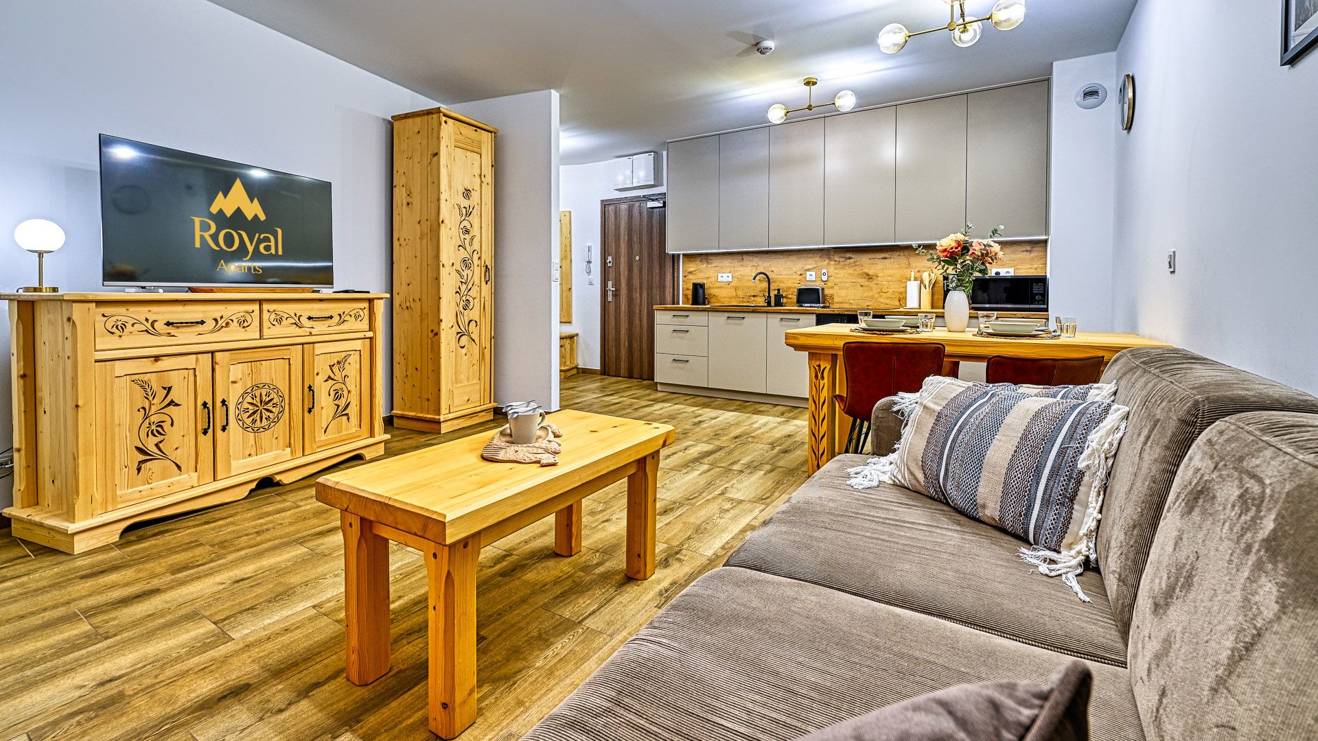 Prezentowany apartament jest częścią prestiżowego kompleksu Stone Hill w samym centrum Szklarskiej Poręby. To nowoczesny, czteroosobowy, w pełni wyposażony lokal o powierzchni 43m^2. W sypialni znajduje się duże łóżko małżeńskie oraz obszerna szafa. Część dzienna apartamentu składa się z, salonu połączonego z aneksem kuchennym i wyposażona jest w rozkładaną sofę, panoramiczny telewizor i stół kuchenny. Całość domyka wykończona w wysokim standardzie łazienka z pralką.