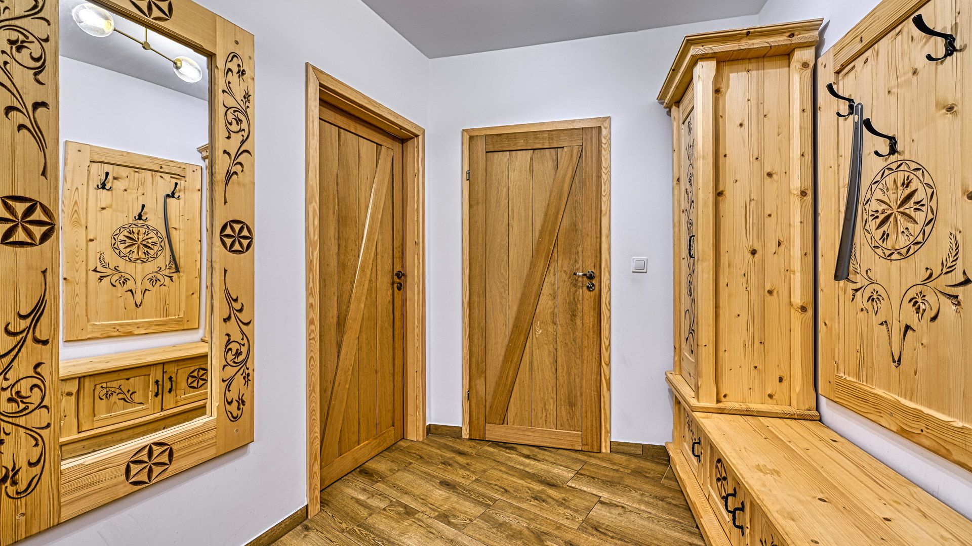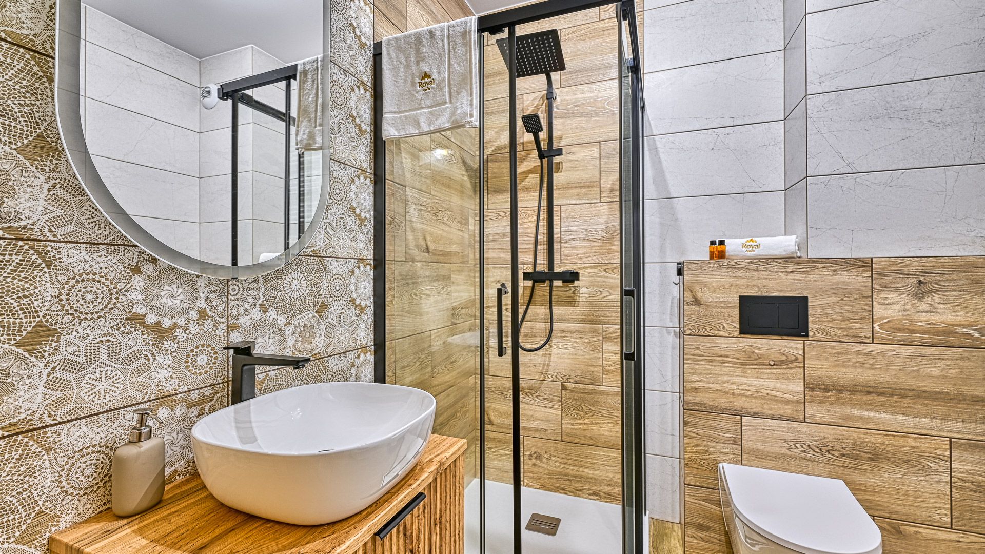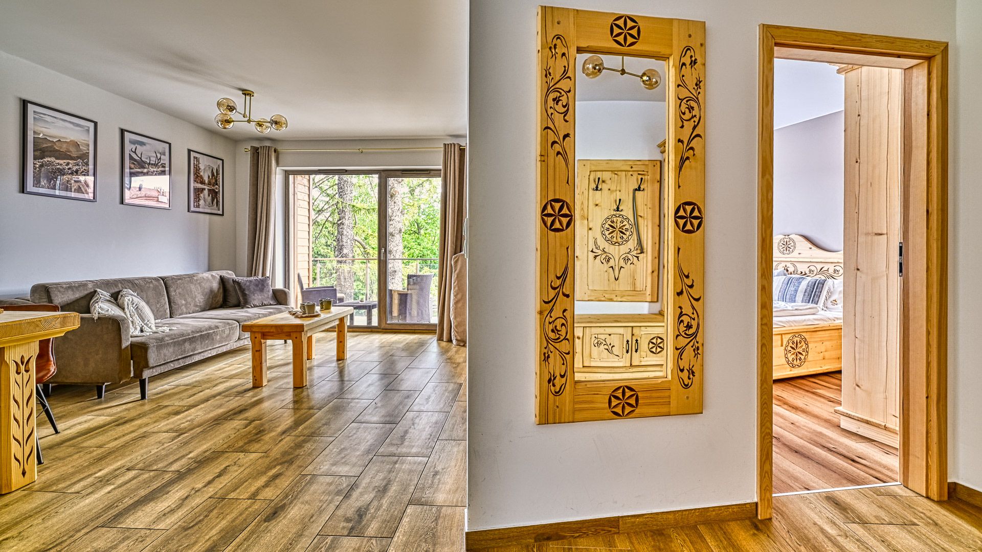 Prezentowany apartament jest częścią prestiżowego kompleksu Stone Hill w samym centrum Szklarskiej Poręby. To nowoczesny, czteroosobowy, w pełni wyposażony lokal o powierzchni 43m^2. W sypialni znajduje się duże łóżko małżeńskie oraz obszerna szafa. Część dzienna apartamentu składa się z, salonu połączonego z aneksem kuchennym i wyposażona jest w rozkładaną sofę, panoramiczny telewizor i stół kuchenny. Całość domyka wykończona w wysokim standardzie łazienka z pralką.
