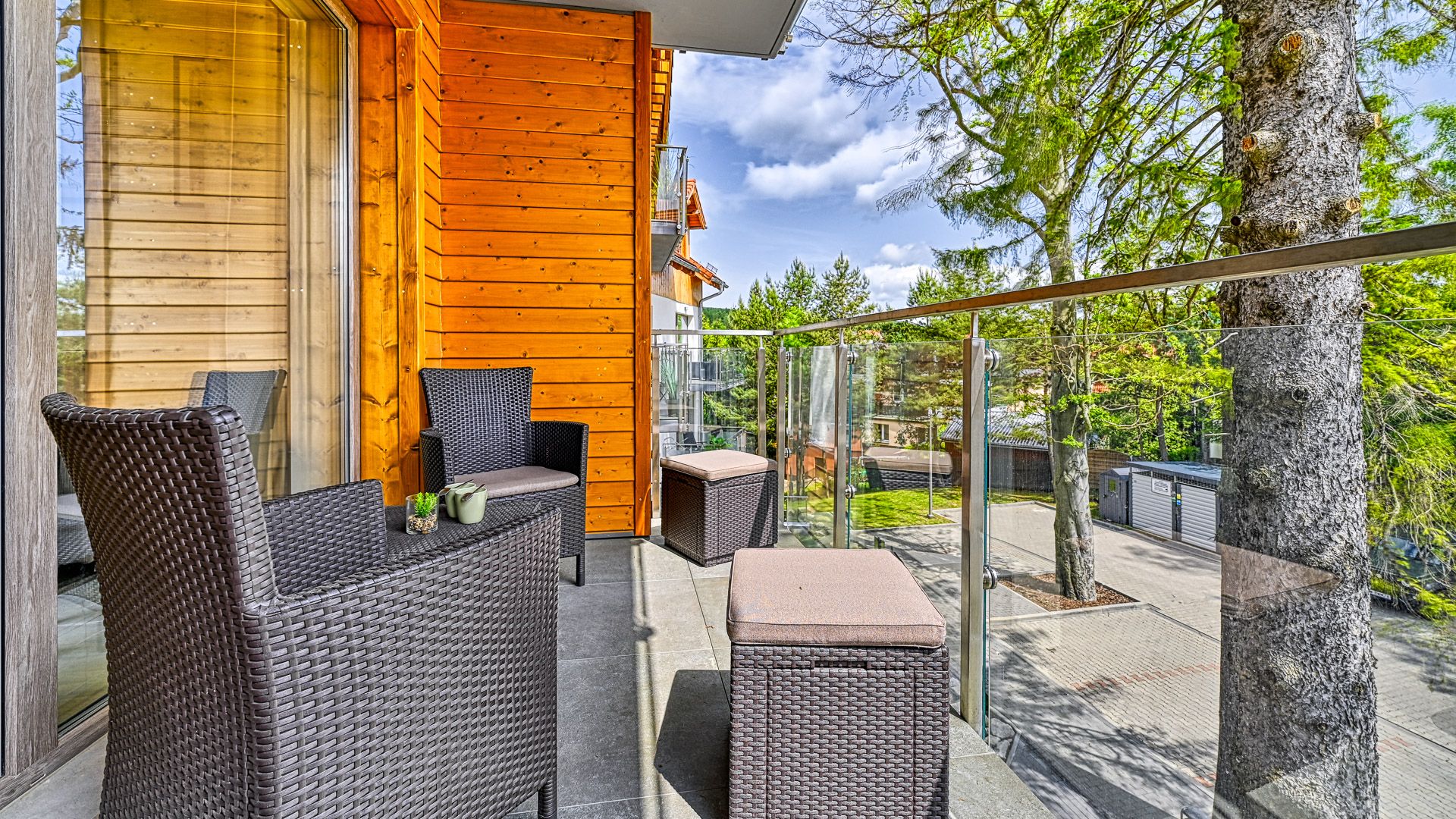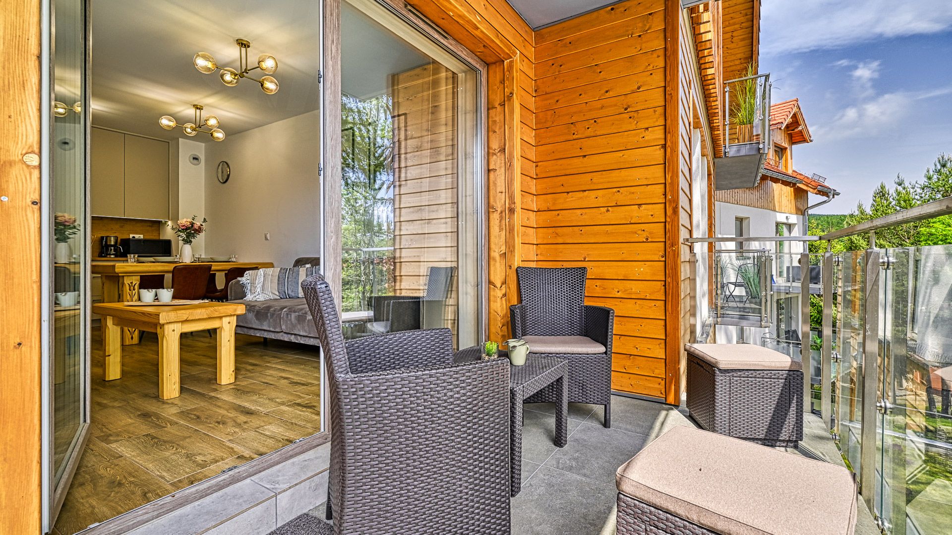 Obszerny balkon będzie ulubionym miejscem Gości na poranną kawę.