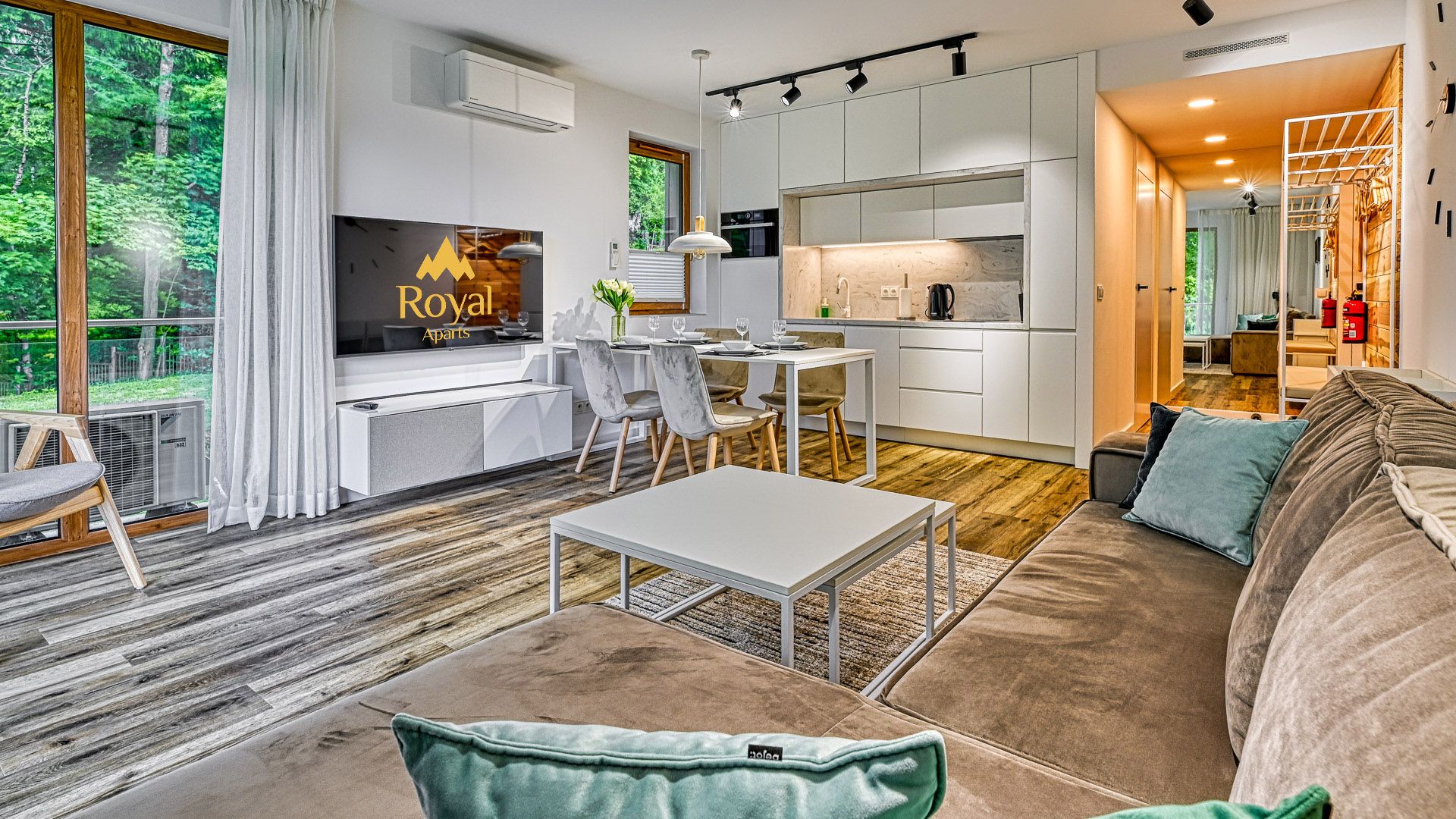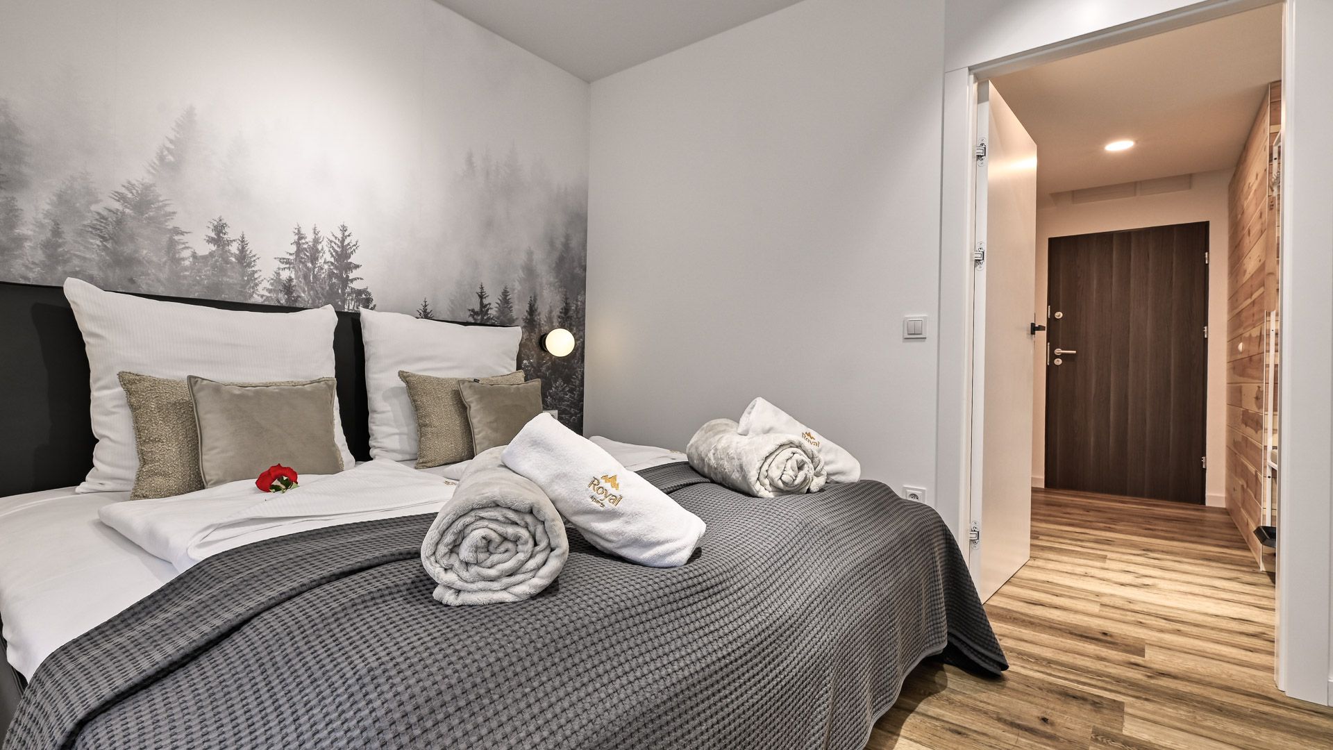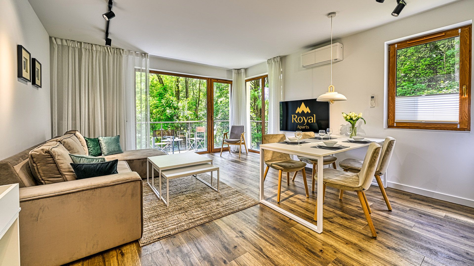 Prezentowany lokal ma powierzchnię 45m^2 i zapewni komfortowy wypoczynek nawet czterem osobom. Składa się z sypialni z dużym, dwuosobowym łóżkiem, części dziennej, połączonej z aneksem kuchennym oraz łazienki z prysznicem. Sam aneks kuchenny zawiera w sobie niezbędne do przygotowania smacznego posiłku sprzęty. Znajdziemy w nim m.in. płytę grzewczą, czajnik, talerze i sztućce, lodówkę, opiekacz/toster, zmywarkę i mikrofalówkę.
