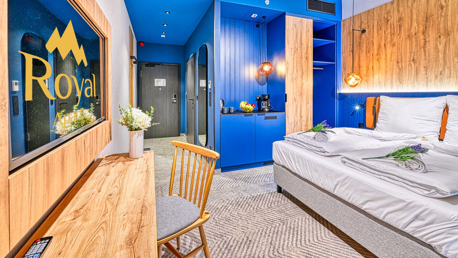 Elegancko urządzone studio w prestiżowym ośrodku położonym w malowniczej części Szklarskiej Poręby, z pięknym widokiem na pasmo Karkonoszy, to świetne miejsce na romantyczny wypad lub spokojny wypoczynek dla par.